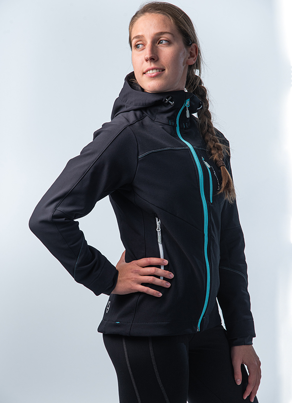 Ženska softshell jakna iz materiala PCA 300 RIP. Trpežen vodo odbojen brez membranski material srednje debeline zagotavlja zelo dobro dihanje, toplotno zaščito in zaščito za veter. Je vsestransko uporabna, tako za gorništvo in smučanje, kot tudi za vsakodnevno uporabo.